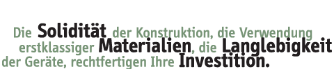 - Hoher Qualitätsstandard durch die Verwendung hochwertiger Materialien sowie saubere und fachgerechte Verarbeitung